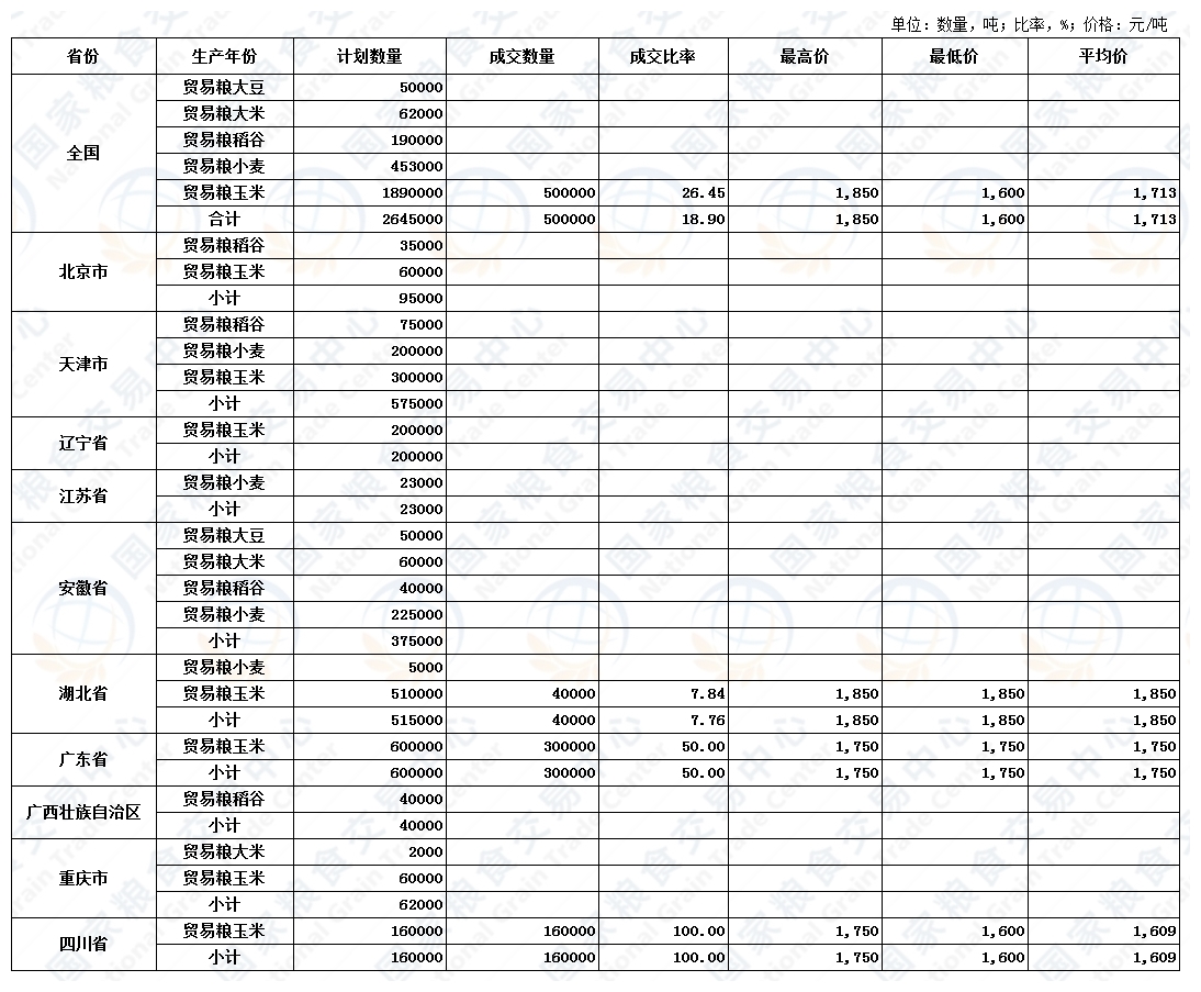 湖北粮网: 交易结果