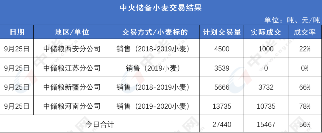图3:9月25日中央储备小麦成交结果
